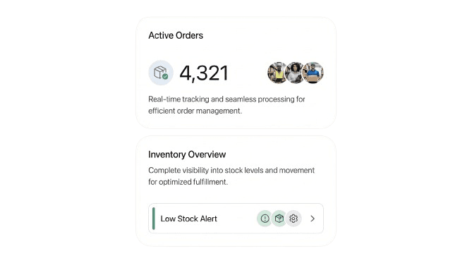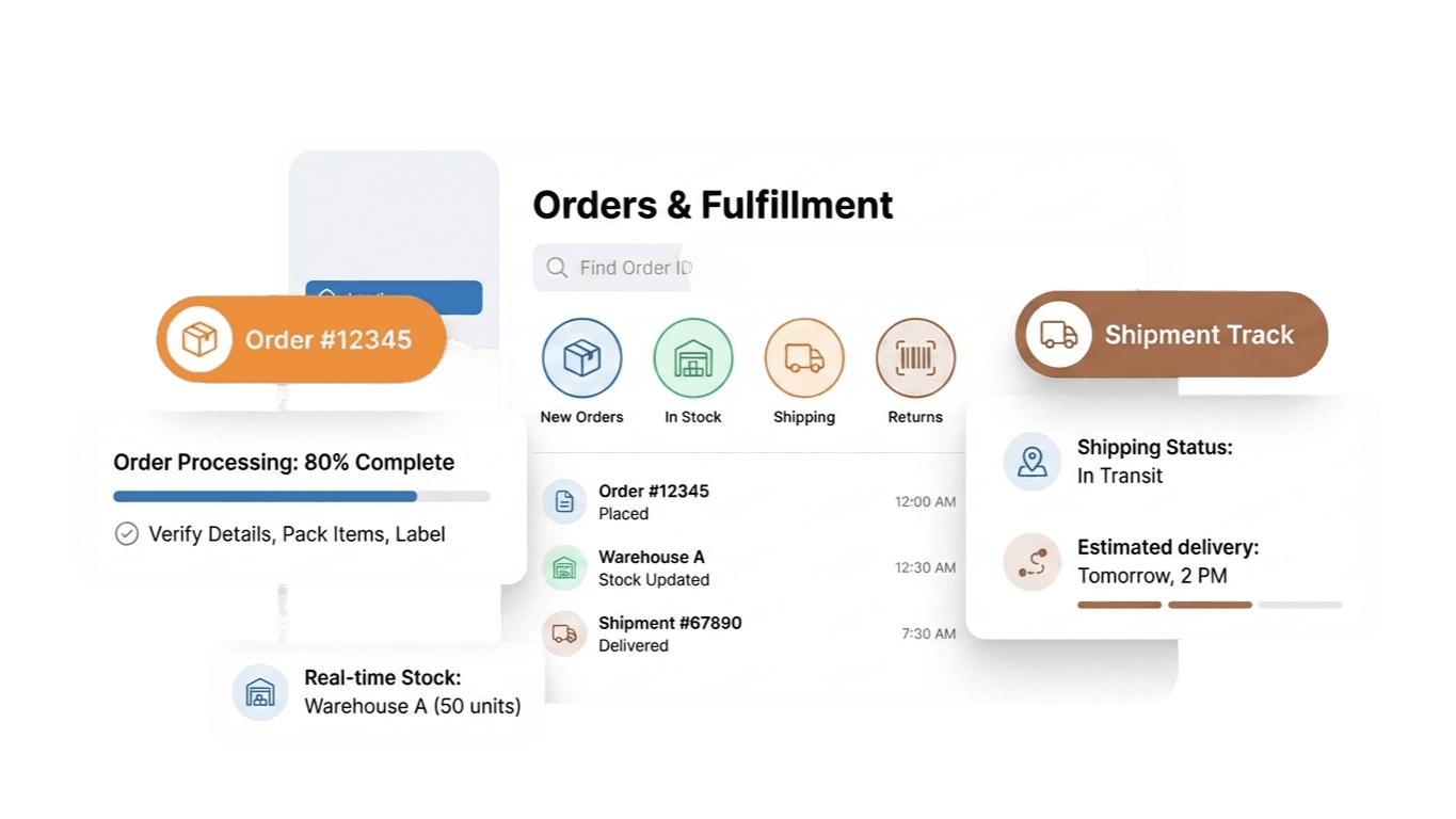 Handle the entire order lifecycle with real-time status tracking, warehouse tools, and complete inventory control for smooth fulfillment.
